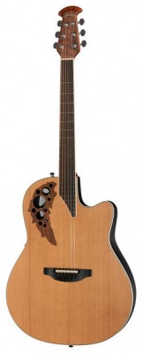 Задняя крышка деки же выполнена из композитного материала Lyrachord, отлично проецирующего акустический звук. Гриф из восточного дерева с накладкой из палисандра, длиной мензуры в 25,25 дюймов и тонким профилем – это именно то, что полюбят игроки, предпочитающие играть на элеткрогитарах. Также корпус обязательно придется по душе небольшим музыкантам. Аппаратное обеспечение гитары увенчано специальными колками от Ovation.