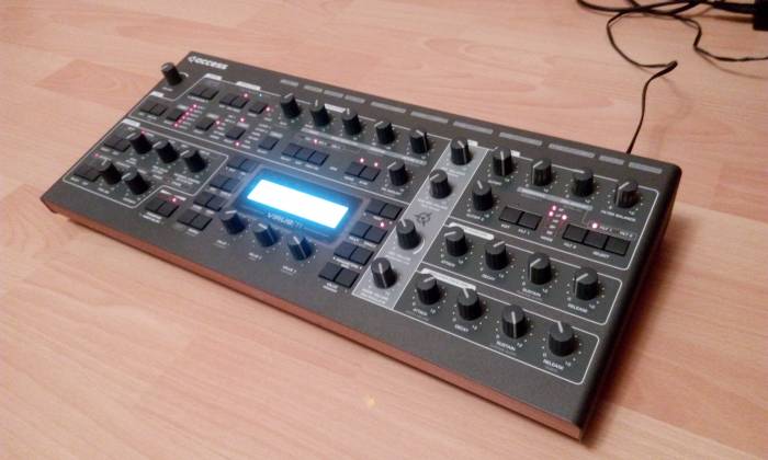 Аналого-моделирующий синтезатор, максимальная полифония -110, мультитембральность -16, 43 кнопки, 33 регулятора, дисплей 128х32 точки, память - 2048 RAM и 512 ROM патчей, 128 перфомансов, 6 балансных выходов с уровнем +4 дБ, выход на наушники, 2 входа, S/PDIF In/Out, есть процессор эффектов, USB. В комплекте нет дополнительных регуляторов.
