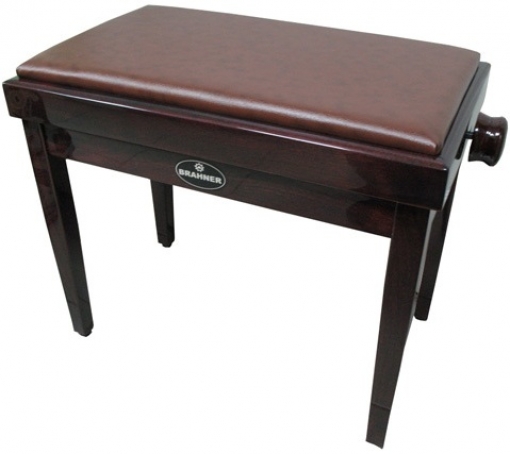 Банкетка деревянная BRAHNER BP-140/MH для рояля/пианино, цвет - МАХАГОН (красное дерево), глянцевая, подъемный механизм регулировки высоты, прямые ножки, размер - 56х33х48-58, обивка - кож. Зам (тёмно-коричневый)
