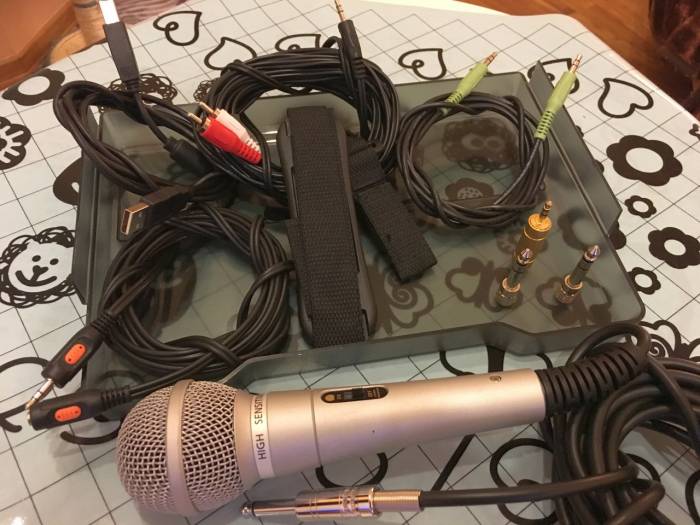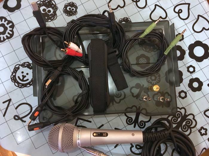- гнездовой разъем 1/4" с регулятором громкости для наложения голоса на музыкальный фон