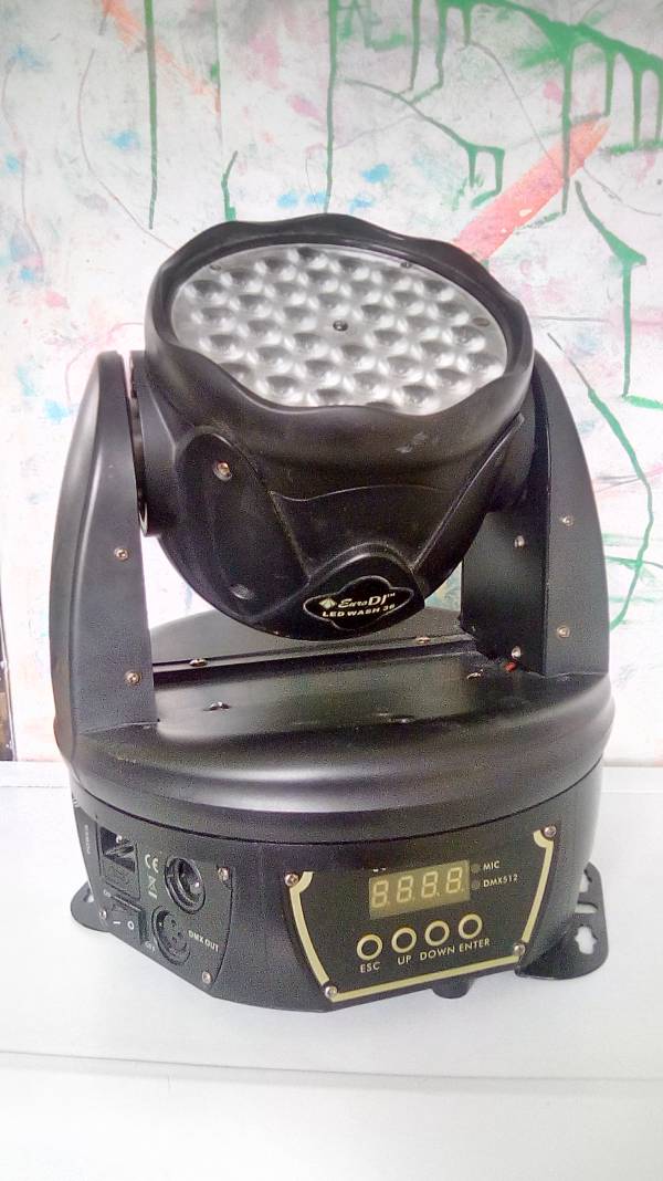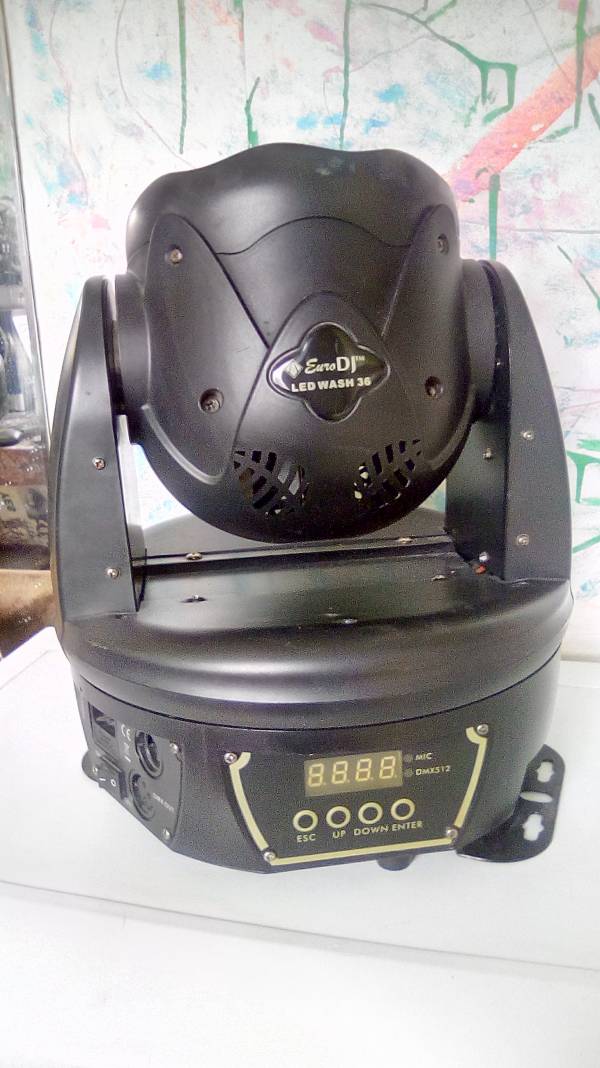 Euro DJ Led Wash 36 - вращающаяся голова. В качестве источника света используется 36 х 1-ваттных светодиодов (R-12, G-12, B-12). Яркость луча сопоставима с приборами на лампе MSD 250. Использование технологии микширования RGB позволяет получать практически неограниченное количество мягких и насыщенных цветов. Также присутствуют макро-эффекты (уже зашитые цвета). Прибор предназначен как для создания светового шоу в задымленном пространстве, так и для создания качественной заливки. За счет применения светодиодов снижено энергопотребление и вес прибора, увеличен ресурс работы без замены источника излучения (до 50 000 часов). Вращающаяся голова Euro DJ Led Wash 36 имеет компактные размеры и идеально подойдет для малых и средних залов – там, где размеры помещения не позволяют ставить громоздкие приборы.