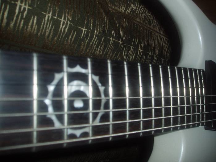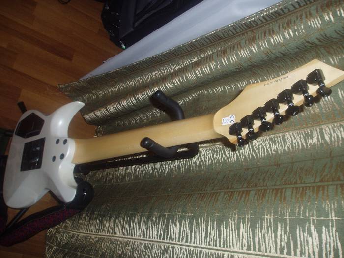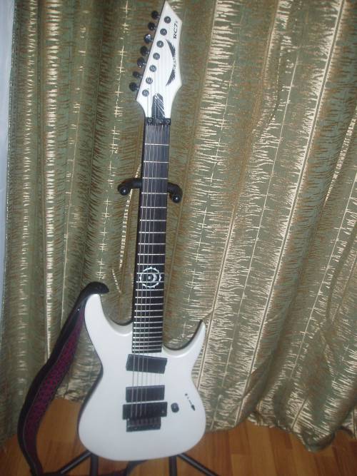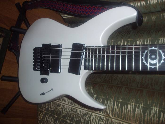 машинка ОРИГИНАЛЬНЫЙ флойд роуз, 24 лада, колки гровер, звукосниматели ежи707, глубокий вырез рогов для удобства доступа к высоким ладам, сверхтончайший гриф, вобщем машина шреда Расти Кули проецировал её именно под свой шредочёс. Мензурка стандартная 25.5. Гитарку брал новую прям с завода до сих пор даж противопыльные наклейки не снимал с крышечек
