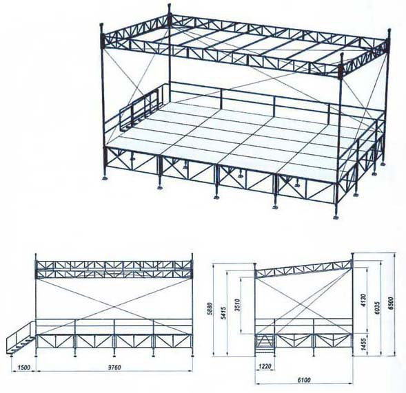 Настил подиума складывается из листов ламинированной влагостойкой фанеры толщиной 24 мм с антипроскальзывающим шероховатым покрытием.