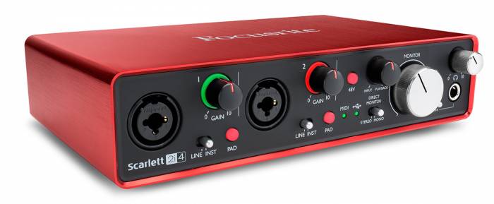 Второе поколение аудиоинтерфейса Scarlett 2i4  является самым универсальным среди USB интерфейсов и идеально подходит тем, кто формирует микс из нескольких сигналов. Это компактный и универсальный интерфейс с двумя микрофонными предусилителями, супер низкой цифровой задержкой, midi in/out каналом и четырьмя аналоговыми высококачественными выходами. Питание по  USB делает интерфейс максимально универсальным и удобным в использовании и позволяет записывать голос или инструменты со студийным качеством в любом месте. Для этого Scarlett 2i4  поставляется с эксклюзивной версией Pro Tools | First и Ableton Live Lite и совместим со всеми версиями MAC и PC.