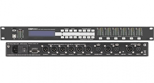 Dynacord DSP 260 – инновационный цифровой системный процессор от немецкого производителя. В конструкции этой модели были использованы самые современные технологии и схемы, проверенные временем надёжные алгоритмы, высококачественные комплектующие. Процессор отличается удобством управления, удобным и понятным интерфейсом. Широкие функциональные возможности модели, выдающееся качество звука и прочность конструкции делают её идеально подходящей для профессионального использования в различных инсталляциях, а также для проката музыкального оборудования. 24-битные АЦ и ЦА преобразователи и 32-битный сигнальный процессор дают возможность получить широкий динамический диапазон (111 дБ). Предусмотрено два аналоговых входа на разъемах XLR, цифровой вход AES/EBU, шесть электронно сбалансированных выхода XLR с возможностью индивидуального глушения, разъем USB. Каждый вход и выход оснащен наглядными светодиодными индикаторами уровня сигнала. Настройку оборудования можно производить как непосредственно с устройства, так и используя интуитивно понятное программное обеспечение. Элементы управления эргономично расположены, имеется контрастный дисплей на передней панели.