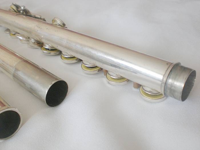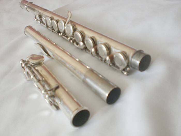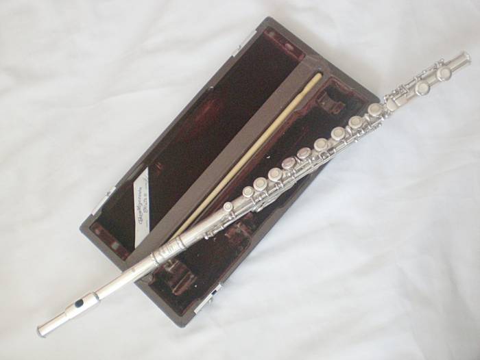 Флейта корпус, головка, механика - с серебряным покрытием, губки полностью из серебра 925й пробы..