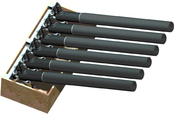 Управление: Для управления установками разработан автоматизированный пульт, позволяющий одновременно работать с 24 установками. Управляющий сигнал от пульта по сигнальному кабелю длиной до 40 м подается на транспортно-пусковой контейнер, где осуществляется коммутация пусковых установок. При расположении пусковых установок вне транспортно-пускового контейнера расстояние до него может быть от 3 до 10 м.