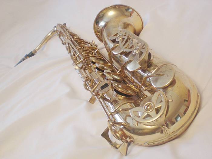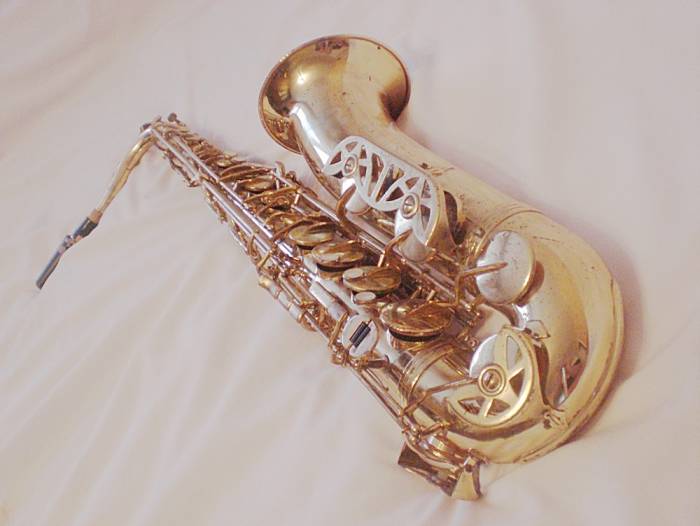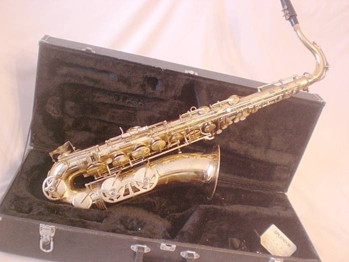 Инструмент из Японии.. История этого бренда, почерпнутая с различных источников такова – первые свои саксофоны японская компания Splendor выпускала в Японии примерно до 70х годов прошлого столетия.. Фирма выбрала самый короткий и на первый взгляд результативный путь – полностью скопировала дизайн , механику и пропорции с легендарного француза Selmer MARK VI – неоспоримого лидера саксофонов тогда, да и сейчас.. Даже логотип на эске практически полностью повторял сельмеровский фирменный знак.. Благодаря этому было достигнуто достойное звучание.. Всё закончилось так, как и должно было закончиться – Сельмер выиграл суд, компания Splendor вынуждена была изменить кое что во внешнем виде инструментов и из за возникших в связи с этими событиями убытков , перенести производство в Тайвань.. К этому времени хороший звук был наработан, инструменты имеют очень лестные отзывы музыкантов разного уровня..