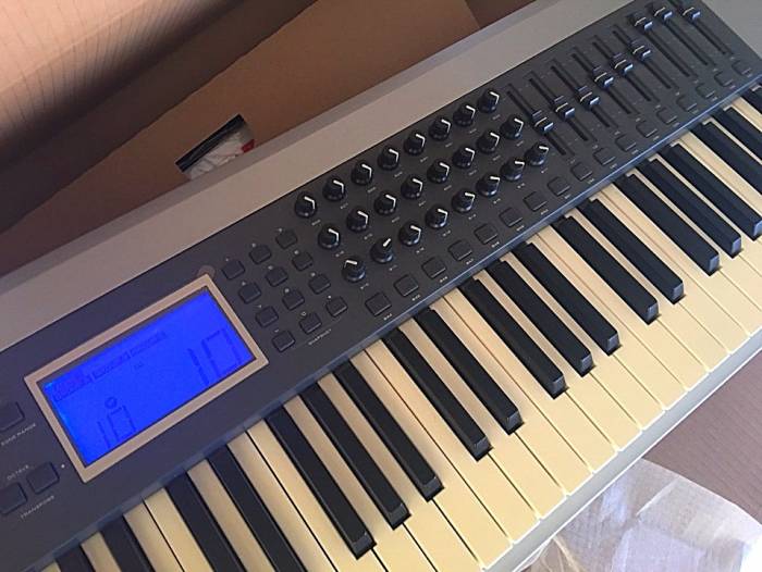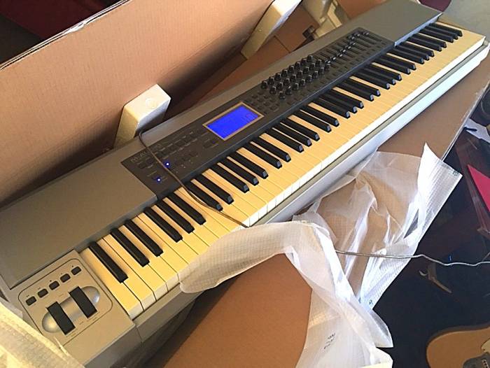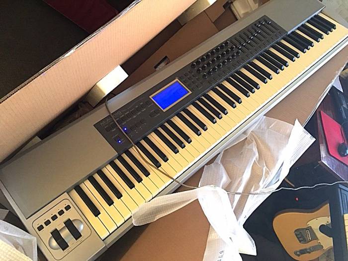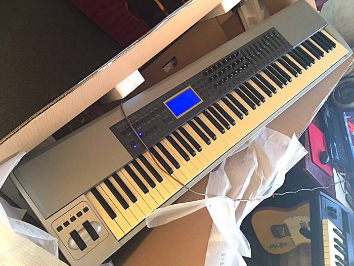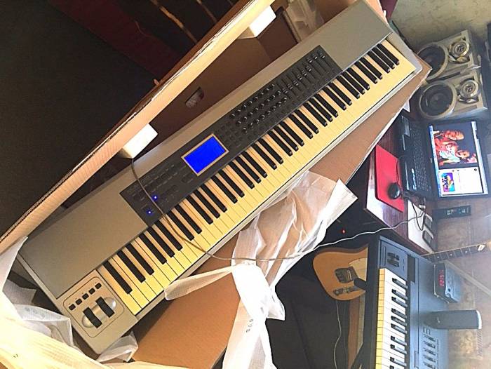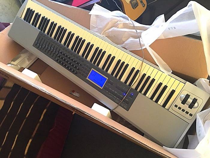 Midi- клавиатуру Keystation Pro 88, USB-MIDI-клавиатура, обладающая 88-клавишной молоточковой механикой, чувствительной к скорости нажатия (velocity).
