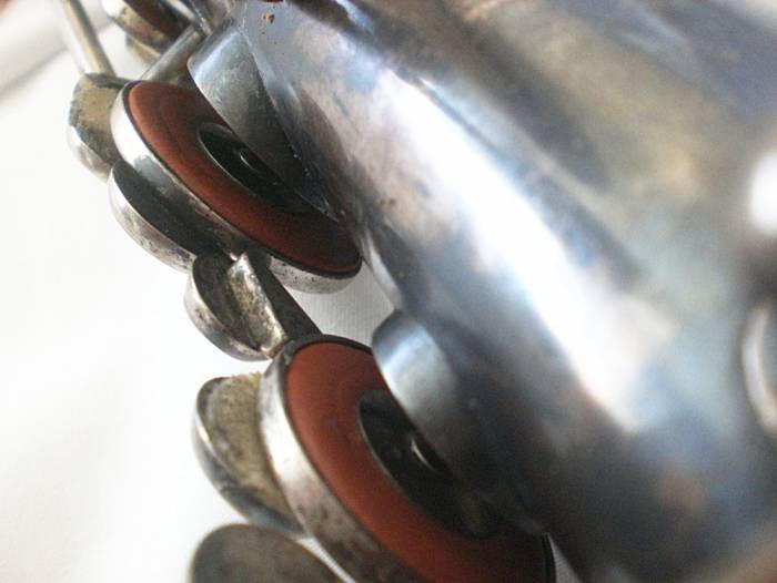 Саксофон полностью перекрыт новыми подушками, со всеми сопутствующими процедурами.. Для экстравагантности установлен сельмеровский рычаг октавника, сам по себе - фирменный дорогой и надёжный
