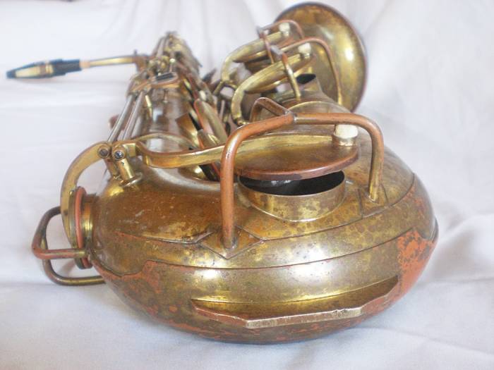 Баритон саксофон старинного мирового известного разработчика и изготовителя духовых инструментов .. Nikkan - ветка отделившаяся от Янагисавы, фабрики входящей в "большую четвёрку" наиболее значимых мировых производителей саксофонов.. Позже производство было выкуплено Ямахой и на его площадях, по их образцам и лекалам стали выпускаться саксофоны Ямаха - второго участника большой четвёрки..