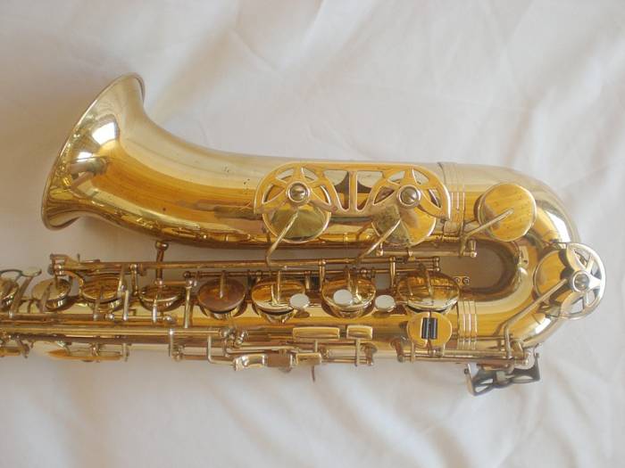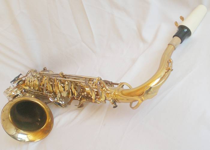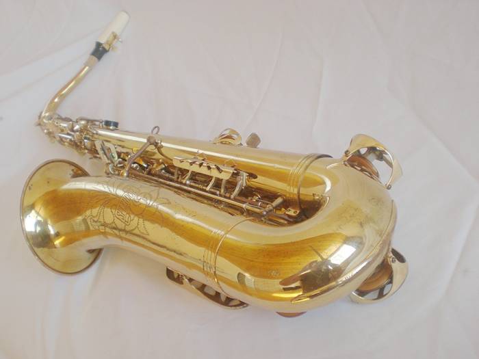Привезен из Японии.. Первые свои саксофоны японская компания Splendor выпускала в Японии примерно до 70х годов прошлого столетия.. Фирма выбрала самый короткий и на первый взгляд результативный путь – полностью скопировала дизайн , механику и пропорции с легендарного француза Selmer MARK VI – неоспоримого лидера саксофонов тогда, да и сейчас.. Даже логотип на эске практически полностью повторял сельмеровский фирменный знак.. Благодаря этому было достигнуто достойное звучание.. Всё закончилось так, как и должно было закончиться – Сельмер выиграл суд, компания Splendor вынуждена была изменить кое что во внешнем виде инструментов и из за возникших в связи с этими событиями убытков , перенести производство в Тайвань.. К этому времени хороший звук был наработан, инструменты имеют очень лестные отзывы музыкантов разного уровня..