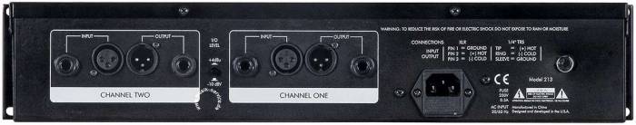 Регуляторы на каждом канале устанавливают степень компрессии от 2 до (, порог срабатывания от -20 до +20 дБ и выходное усиление до +20 дБ.