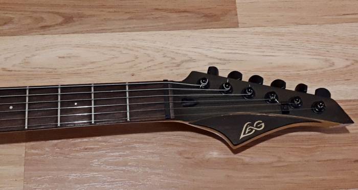 Головка грифа: Палисандр, кленовый логотип LAG