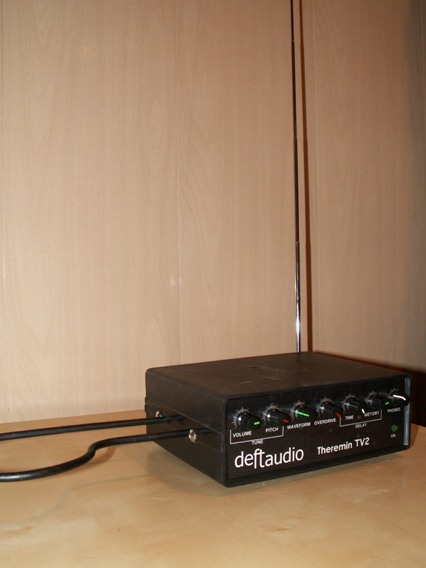 2.Терменвокс Deftaudio TV2. Модель обладает возможностью изменения формы волны, функции overdrive перегрузки выходного буфера. Также встроен модуль delay эффекта с регулировкой времени задержки и уровня эффекта. Обладает стандартной антенной громкости в форме петли и расширенной базой по отношению к TV1.