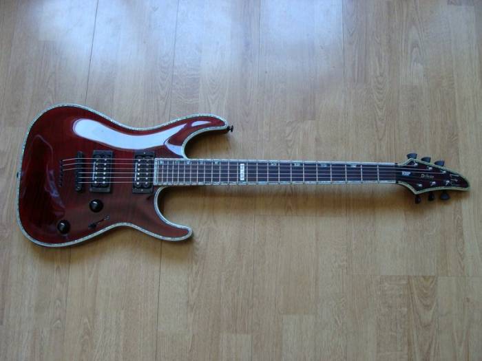 Инструмент выпущен в 2002 году, пожалуй в самое удачное время для делюксовых ЛТД)) это отличает его от Н-шек выпущенных позднее - отличия минимальны, но есть. Первое - это надпись ESP на анерной крышке - позже ее стали наносить на обратную сторону головы грифа, и второе - гриф вклеен "ступенькой", подобно лесполообразным гитарам - позже пятку стали зализывать для более удобного доступа к последним ладам. Хотя и на старого типа конструкции в силу продуманной формы никаких проблем с играбельностью не возникает.
