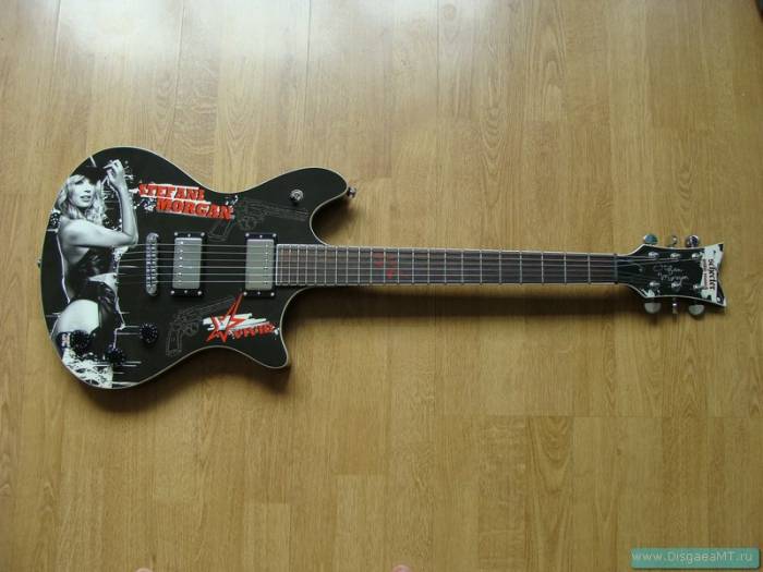 Две весьма занимательные гитары. По конструкции это Темпест кастом, но со своей фишкой - гитары оформлены картинками, посвященными двум самоотверженным труженицам болта и орала - знаменитым порнозвездам Брайане Бенкс и Стефани Морган. Обе дивы видные и их прелести занимают добрую треть корпуса гитары, лаская искушенный (и не только) взгляд. Вообще дизайн инструментов весьма привлекательный - даже если оставить юродство на тему порнухи, гитары выглядят очень стильно и их приятно держать в руках.