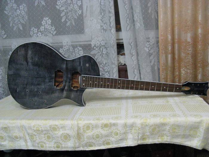 Струн: 6, Ладов: 24, Гриф: клен (maple), 3 куска, переклейка с махагоном (шпон), Накладка грифа: палисандр (rosewood) или черное дерево (ebony), Крепление грифа: вклеен, Дека: красное дерево (mahogany), Накладка деки (топ): клен (maple),