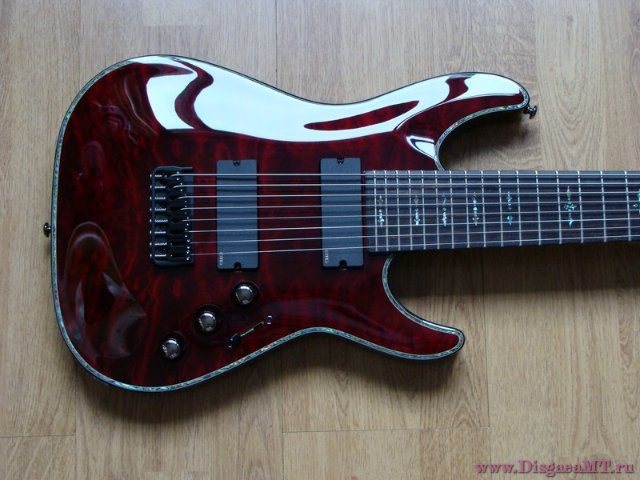 Настоящий монстр! Компания Шектер, идя в ногу со временем, вовремя стала продвигать бюджетные (относительно разных кастомшопов) восьмиструнки, завоевав свой сегмент рынка в этом развивающемся направлении. В рамках серии Хеллрейзер все более менее привычно - махагон, вклеенный гриф, мензура 26,5, датчики EMG и... 8 струн! Даже выглядит гитара опасно, вызывая ассоциации как минимум с BFG из знаменитой игры "DOOM".