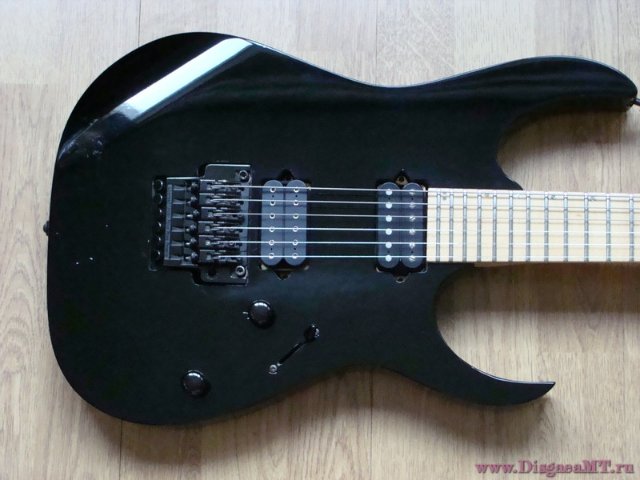 очень крутой инструмент из линейки J.Custom. Этот модельный ряд позиционируется как стоящий выше гитар Prestige и включает в себя весьма интересные модели, зачастую на весь остальной модельный ряд Ибанеза похожие только внешне. По сути это мелкосерийные инструменты, собираемые в Японии с применением самых качественных комплектующих. Данная гитара - одна из таких. Первое, что бросается в глаза - "необычный" гриф. РГ с кленовыми грифами и реверсными головами во все времена считались редкими штучками (за исключением некоторых моделей с кленовым грифом 5хх), и если кленовый гриф на старых серийках (и некоторых новых) появлялся, то вот реверсная голова встречалась крайне редко.