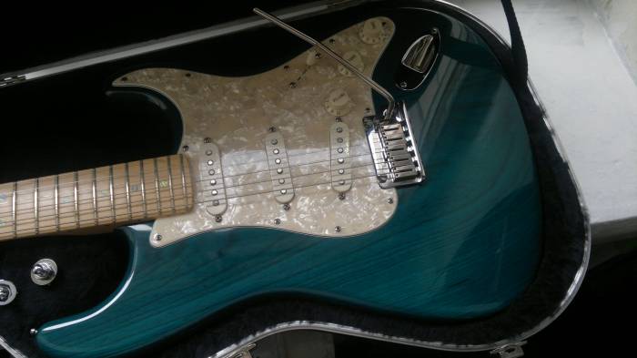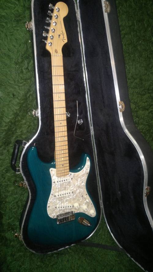 Превосходный американский Fender American Deluxe 2001 года, состояние практически нового инструмента- как с витрины! Прокаченный бесшумными датчиками noiseless и страплоками Shaller! Гитарака изумрудно-зелёного цвета с открытой структурой ясеня, но на фотографиях выглядит больше сине-зелёной Лады в идеальнейшем состоянии, анкер работает отлично. Система Tilt Neck Позволяет регулировать угол наклона грифа, что на стратах большой плюс! Локовые колки которые отменно держат строй гитары! По звуку это самый настоящий стратокастер, «стекло» имеется в избытке и лучше это услышать самому! Если Вы хотите Американский Делюксовый Страт в шикарном состоянии и по весьма привлекательной цене- эта гитара то что Вам нужно!
