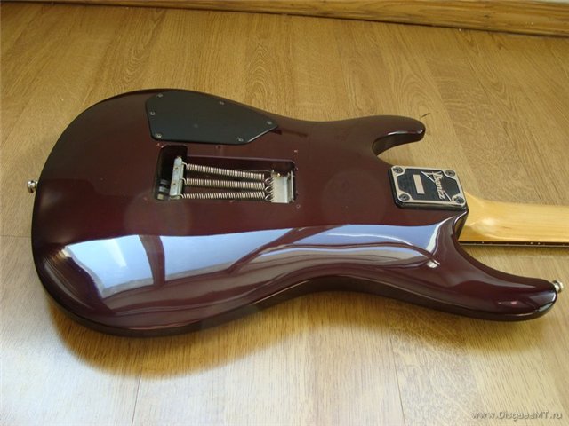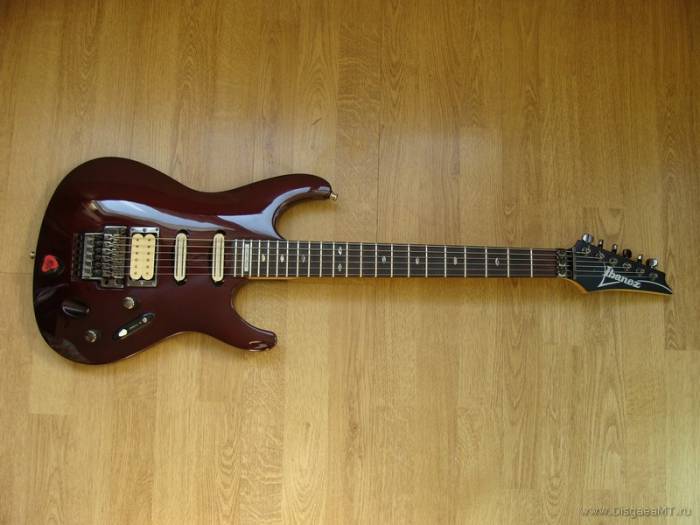 Весьма популярная и далеко не простая модель S-серии. Особых секретных плюшек в гитаре нет, но тем не менее инструмент серьезный, впрочем как и многие японские Ибанезы того периода (начало 90х) - серьезные профессиональные инструменты. Эта серия интересна тем, что изготавливается из красного дерева, а не из липы, что предполагает более яркий и сочный тон. Также очень интересен корпус - он очень тонкий по краям, максимально удобный для многочасовой игры, наверное даже удобнее РГ-шейпа. Традиционно мегаудобный ибанезовский гриф, при игре на котором руки чуть ли не отдыхают) Ну и немаловажное улучшение - на одном из инструментов установлены американские датчики Seymour Duncan, в качестве которых усомниться сложно) Хотя и более бюджетный вариант с датчиками попроще тоже дает прикурить) Очень неплохое тремоло стоит на этих гитарах - Edge тех лет весьма успешно конкурирует с ОФР как по надежности, так и по возможностям. Очеень радует звук - после ровного достаточно предсказуемого саунда липовых Ибанезов, краснодеревянная С-ка удивляет - тон чистого канала сочный и яркий, на синглах и сочетаниях датчиков звук почти стеклянный, околостратовский, что вызывает самые удовлетворенные чувства) Весьма приятен перегруз - сочетание махагоновой деки и отличных датчиков на хамбе выдает мощный мясной саунд, впрочем, не лишенный четкости, отлично подходящий для быстрых техничных запилов - примерно на таком же инструменте играет гражданин с раскосыми глазами из Dragonforce))) Впрочем и в других стилях более тяжелых гитара замечательно покатит - вспомните хотя бы Carcass) Подводя итог, хочется отметить, что несмотря на разные датчики, разница в звуке между которыми, безусловно есть, обе гитары - весьма внушительное оружие в руках опытного гитариста!