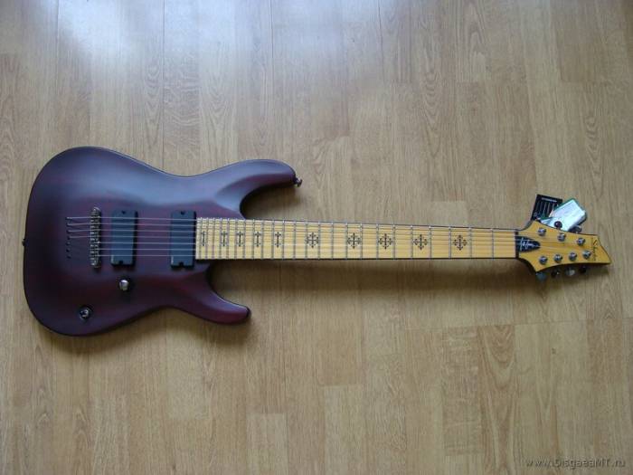каждую минуту - куда же вывалился тюноматик? Также это вносит вклад и в звук, придавая чуть больше атаки. По традиции для Шектера, эта семиструнка является баритоном с характерной мензурой 26,5 дюйма - наверное золотая середина между натяжением струн и удобством игры, когда рука еще воспринимает гриф как обычный, но натяжение струн уже выше, и они не висят как сопли.