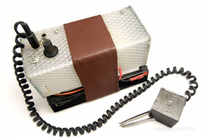 Устройство состоит из трех блоков: электронный, аккумулятор и механическая часть (она и прикладывается к зубам) а так же адаптер для зарядки от сети 220в.