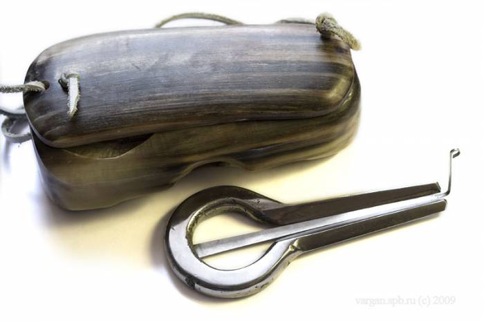 Большой темир-комуз Батырканова в роговом футляре - Киргизский варган (комуз),