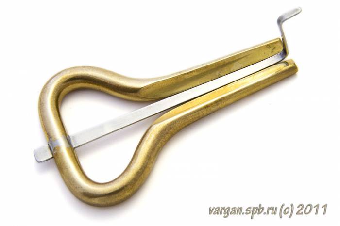 Монгольский аман-хуур из толстого латунного листа отличается от своих собратьев кардинальным образом. В противоположность ряду Маленький-Треугольный-Пацифик-Звезда, этот обладает чистым, гладким звуком, маленькой чувствительностью и небольшой громкостью. Причиной тому - язычок из другого металла, который, кстати, так же как у всех "монголов", совершенно не заточен. Материал его довольно толстый, колено не отклоняется при любых ударах; приложив побольше усилий, варган можно раскачать и выдать неширокий, но сдержанно-аккуратный набор звуков.