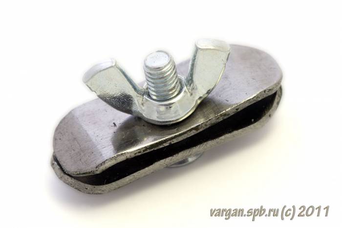 Крепление, позволяющее соединить в одну конструкцию два практически любых варгана для одновременно-переменной игры. С помощью нескольких креплений можно собирать целые нотные наборы. Максимальная толщина рамы варганов - 8мм.