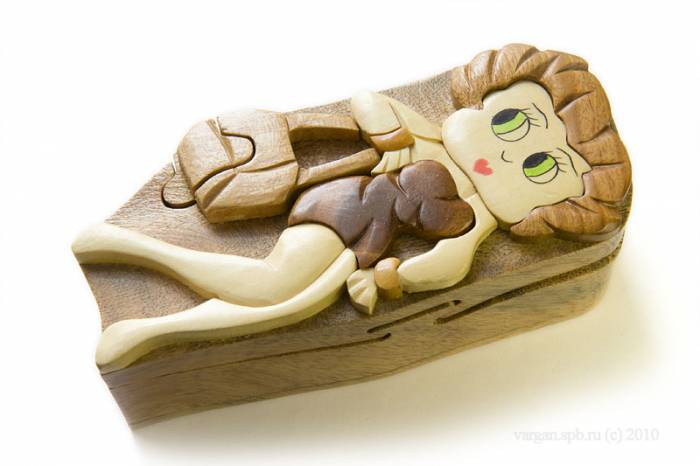 Футляр-шкатулка "Красотка" из ценных пород дерева с объемной инкрустацией мозаикой (техника маркетри XVI в). Каждое изделие уникально и содержит оригинальную систему крепления крышки. Один из лучших вариантов упаковки подарка!