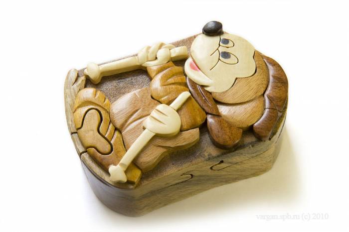 Футляр-шкатулка "Микки Маус" из ценных пород дерева с объемной инкрустацией мозаикой (техника маркетри XVI в). Каждое изделие уникально и содержит оригинальную систему крепления крышки. Один из лучших вариантов упаковки подарка!