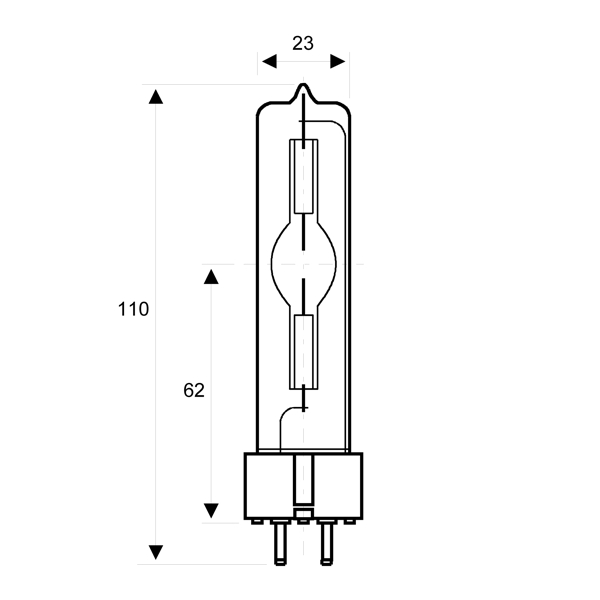 OSRAM HSR 400/60 – одноцокольная металлогалогенная газоразрядная лампа с высокой световой отдачей и ультрафиолетовым фильтром, роль которого выполняет наружная колба. Лампа характеризуется большой яркостью и средним сроком службы 1000 часов. Предназначена только для холодного пуска и не имеет возможность повторного запуска из горячего состояния. Питание лампы может осуществляться от электромагнитного или электронного балласта.