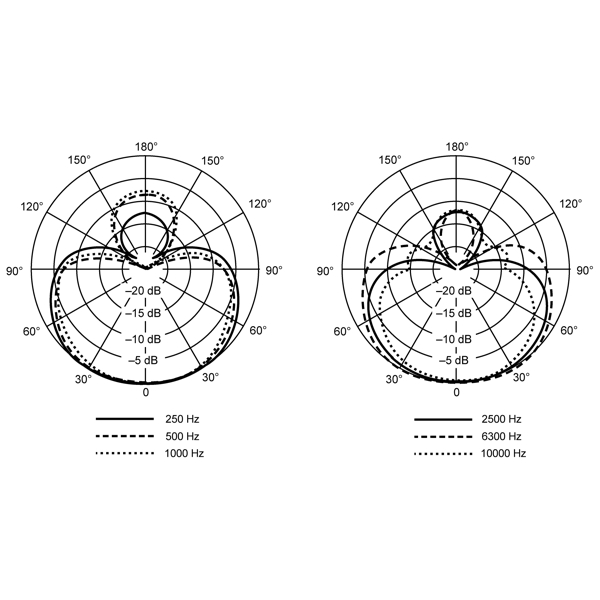 Диаграмма направленности: суперкардиоида, симметричная относительно оси микрофона