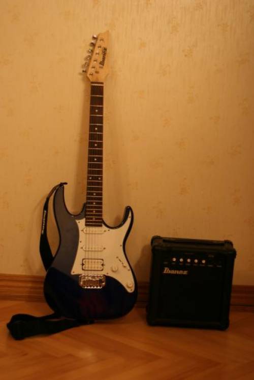 Продаётся электрогитара ибанэз - цвет синий,вместе с комбиком, ключом и чехлом.