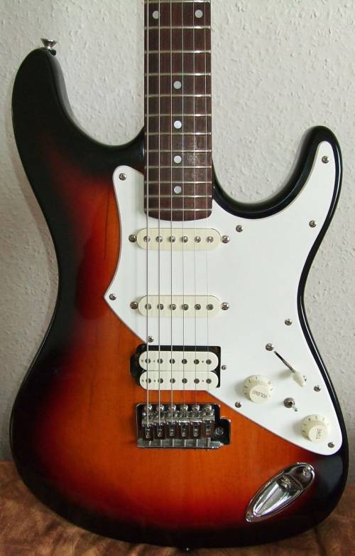 Звукосниматели: S - S - H, есть переключатель отсечки катушки на хамбэкере, шикарная отдача, регулировки -