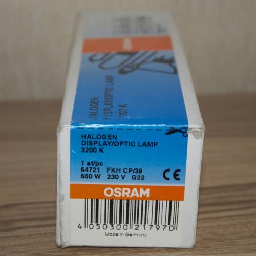 OSRAM 64721 FKH CP/39 - Галогенная лампа мощностью 650W, 230V, код ANSI - FKH, код LIF - CP/39, цоколь G22.