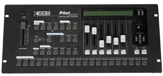 SGM Pilot 2000 – это, одна из самых надежных, компактных и удобных консолей управления светом используемых в прокатной индустрии.