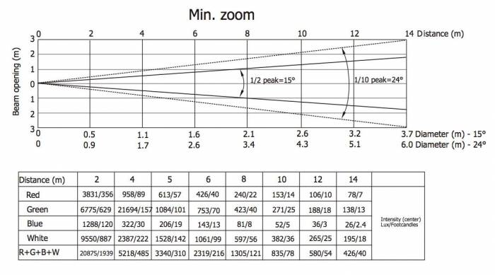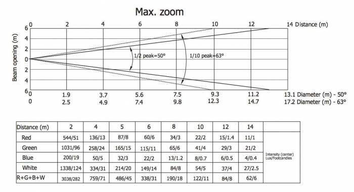Размещенные тремя концентрическими кольцами, эти LED-чипы предлагают уникальные возможности для создания великолепных эффектов, направленных на зрителей, а также обеспечивают безупречно равномерную цветовую заливку сцены и декораций. Эта система отличает LEDWash 600 от любых других светодиодных приборов на рынке и делает его по-настоящему мультифункциональным. Другие отличительные особенности прибора – моторизированный зум в широком диапазоне 15–50°, мощное быстрое стробирование и запрограммированные заранее стробоскопические эффекты.