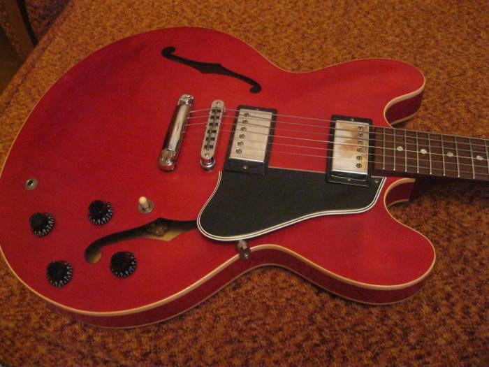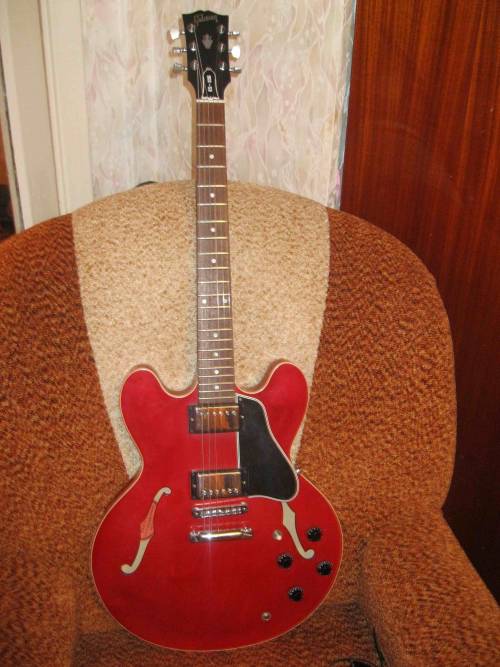 Продам гитару Gipson ES-335. Made in USA, 2005. Состояние отличное. Звучит превосходно. Родные колки заменены на локовые Spergel USA ( см. фото) предыдущим владельцем. В остальном, весь оригинал. В области головы грифа был сделан ремонт в Штатах ( я купил ее уже в таком состоянии), но на качество игры, звука, прочности и целостности это никоим образом не влияет. Звук очень певучий и живой. Вы не будете разочарованны. В комплекте с жестким кейсом и ремнем.