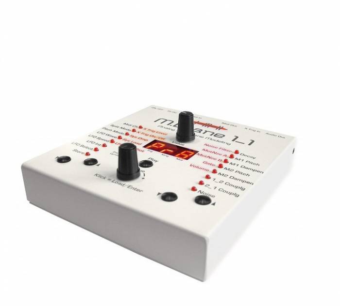 M.Brane 11 Analog Membrane Modeling Synth является оптимизированным для ударных аналоговым синтезатором с удивительно большим диапазоном возможных звуков. Новая технология позволяет создать с помощью 2 аналоговых Т-Bridge осцилляторов посредством генерирования и затухания подлинные мембранные звуки. Универсальный генератор шума с White Noise и Metal Noise и простое управление огибающей могут генерировать Snare, Rim Shot и Cowbell и даже Bongo.