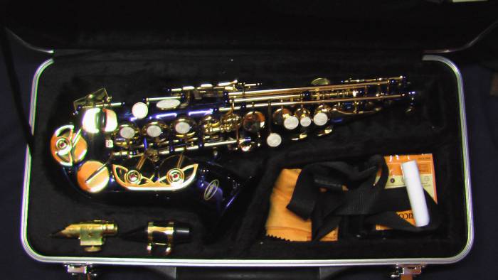 Продам саксофон сопрано Lazarro (изогнутая модель, синее покрытие) + мундштук Otto Link 8* кейс со всеми пренадлежностями.  Идеальное состояние.