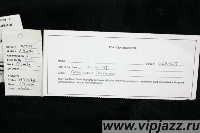 Описание: Made in USA, c-н 628967, 1996 год. Гитара Custom Oder (обычно на McCarty на корпус не идет накладка из клена, тут она полноценная как на Custom 22 и 24). Отличное состояние (см. фото), все настроено и готово к работе. Лады в в норме, никаких игровых нареканий. В комплекте гитара, документы, кейс.
