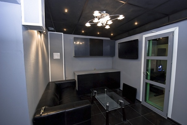 Записались в синею большую комнату. Оказалось, что комната полностью бетонная с большими окнами и стеклянной дверью абсолютно не подготовленная акустически, кроме нескольких 2х сантиметровых отваливающихся панелек жидко прикрученных саморезиками к стене. Акустика такая, что пернуть, извините, было страшно. Развернулись и уехали. Въехать/выехать с 0;00-6;00 нельзя. Не рекомендую.