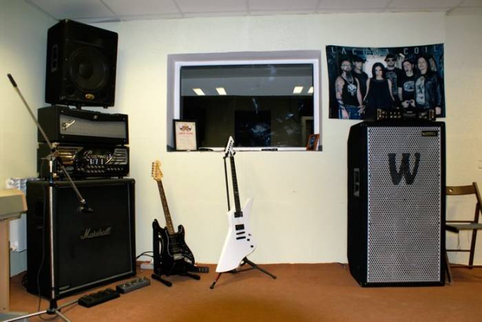 К вашим услугам 2 репетиционные комнаты с качественным аппаратом, комната звукозаписи и отдельная тренировочная комната для индивидуальных занятий барабанщиков.