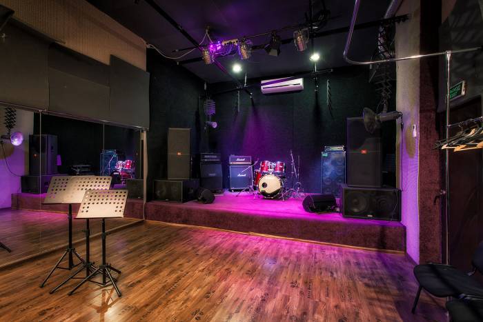 Репетиционная база - 6 премиум залов. Студия звукозаписи - поканальная запись, запись репетиций, услуги диктора, озвучивание, запись песни. Большой зал (50 кв.м.) для фото и видео съемок, проведения небольших концертов, репетиций групп с расширенным составом (оборудован звуковым и световым оборудованием, зеркалами и сценой). Съемка видеоклипов высокого качества для ТВ. Школа вокала.