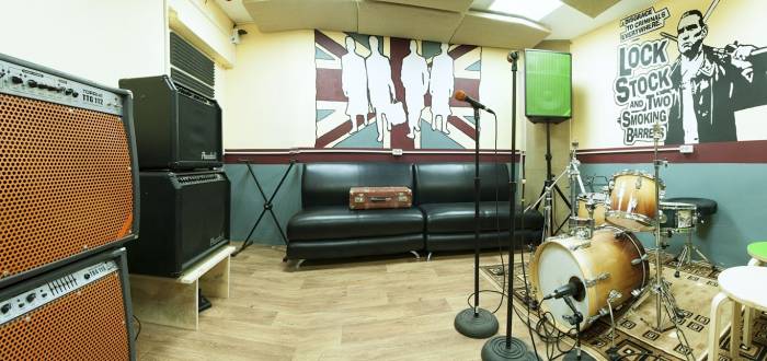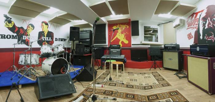 Наша репетиционная база предоставляет Вам шесть репетиционных комнат авторского дизайна по мотивам культовых фильмов Тарантино, Родригеса и Гая Ричи.