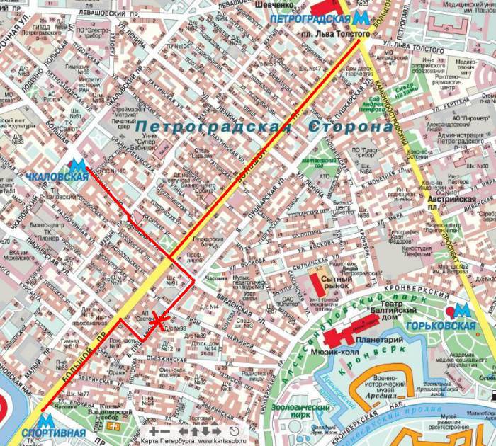 Станция метро: Горьковская, Петроградская, Спортивная, Чкаловская
