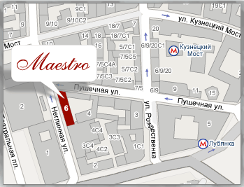 В самом центре Москвы, напротив ЦУМа и в двух шагах от Красной площади «Маэстро» - самый легендарный музыкальный магазин столицы. За ним давно закрепилась репутация культового места, где музыканты и звукорежиссеры могут приобрести все необходимое - от медиатора до акустической системы.